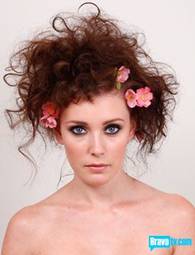 Can you say bird's nest? No girl would be caught dead looking like this outside of a fashion show... or Halloween. As much as this hairstyle is impractical, I would have to say that it is the most "Avant Garde" -do so far, if we go by the definition given in the intro. There is no doubt that this hairstyle is very different and artsy, but the hair design really does have a plan here. It is not just a big mess like Bed Head, but it actually looks like something- an attack of nature! The hairstyle here says something, and perhaps it even matches the style of the clothes that are being shown off too. I have no idea why girls like this stuff.